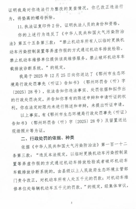 因直接送达、邮寄送达等方式均无法送达,依照《中华人民共和国民事诉讼法》第九十五条规定,向你公告送达本行政处罚决定书(鄂州环罚字〔2026〕2号)。自发出本公告之日起,经过三十日即视为送达。