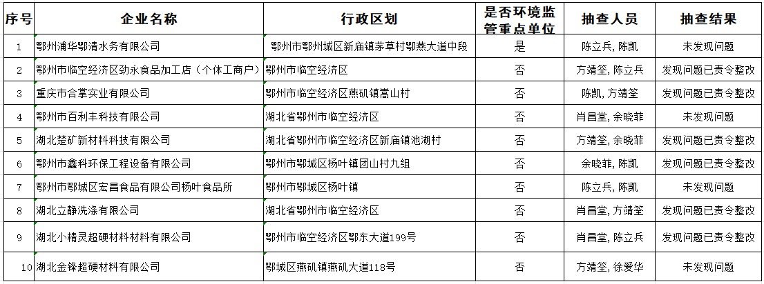 鄂州市生态环境保护综合执法支队临空大队2025年3季度“双随机、一公开”抽查结果公示(1)