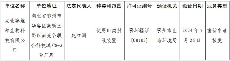 2024年7月26日辐射安全许可证办理信息公开表